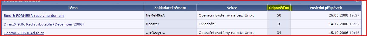 U výpisu příbuzných témat nesedí nadpis sloupce s počtem odpovědí, tvar "Odpověďmi" je zvláštní... viz obrázek
